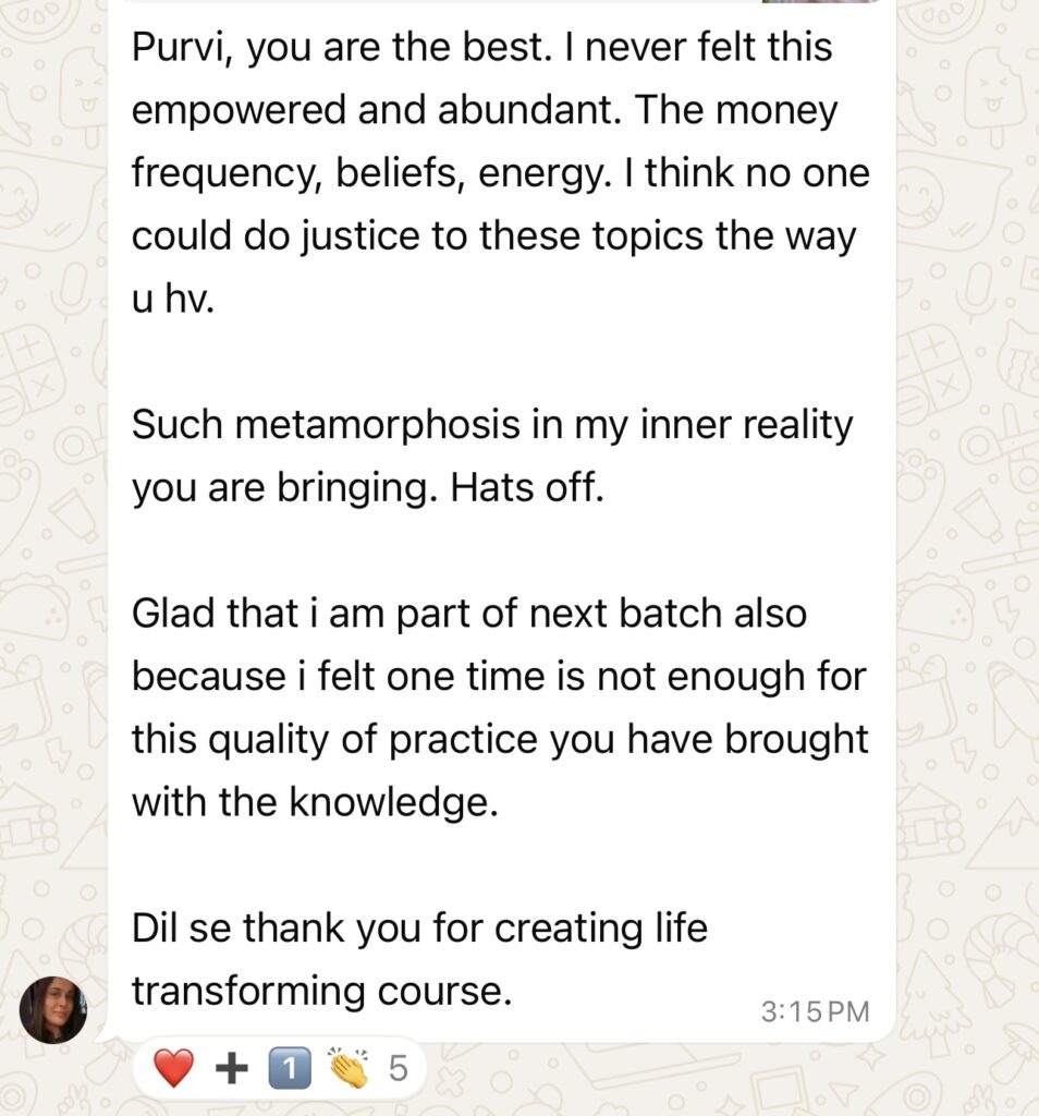 This course contains most comprehensive knowledge on how to align yourself with money energy. It contains, money energetics, how to cultivate relationship with money, Belief breaking, Becoming an excellent Receiver and much more.
